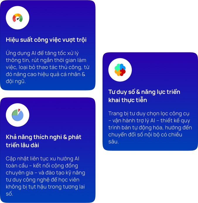 Tại Việt AI, chúng tôi không chỉ cung cấp kiến thức mà còn trao quyền làm chủ công nghệ. Với cách tiếp cận thực hành – tư duy ứng dụng – cập nhật liên tục, Việt AI giúp cá nhân và tổ chức triển khai Trí tuệ Nhân tạo một cách bài bản, có định hướng và tạo ra giá trị thật sự trong công việc.